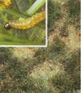 Sod webworm moths don't feed on lawn grasses, but they drop their eggs into the grass as they fly. After 6 to 10 days, the eggs develop into very hungry caterpillars. These immediately begin feeding on grass blades, and are active only at night. As they feed, they build silk-lined tunnels in the thatch near the soil surface. During the 35 days or so that the webworm lives as a caterpillar, it can eat about 4 square feet of grass. |